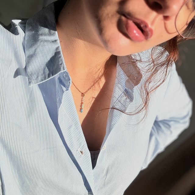 Le pendentif, d’une dimension de 25 x 3 mm, est délicatement suspendu à une chaîne fine de 45 cm, idéale pour un port quotidien. Les pierres de 3 mm ajoutent une touche de brillance subtile et naturelle.