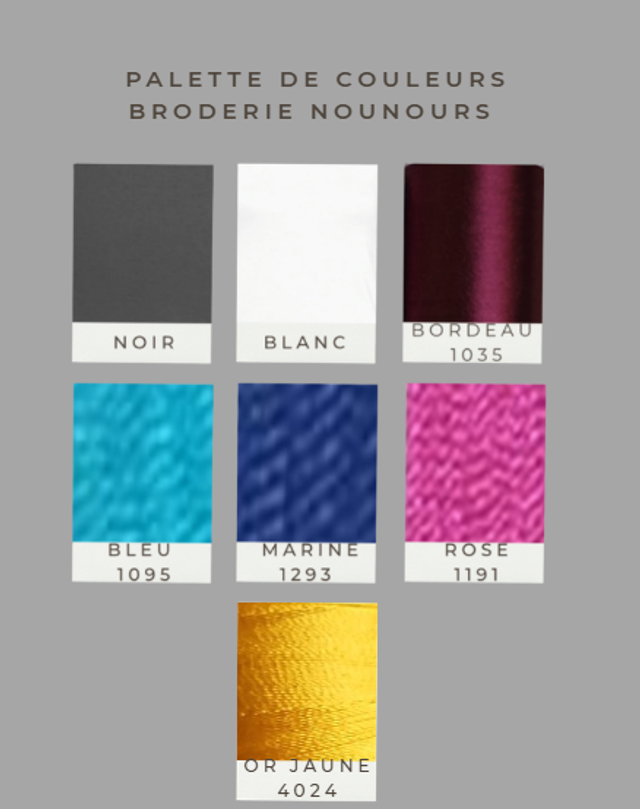 Vous pouvez également choisir la couleur de la broderie selon vos envies! Voir photo de l'article!